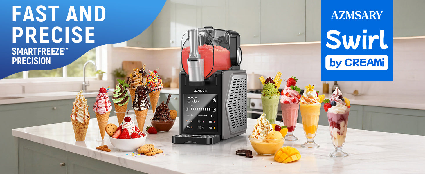 Slushie Machine, 85oz Ice Cream Machine & Slushy Machine for home, with LED Display, 6 Preset Programs for Margaritas, Frappés, Milkshakes, and Soft Serve, Automatic Cleaning, No Ice Needed